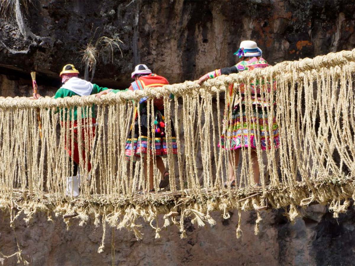La existencia de este puente data desde la época inca y su mantenimiento y renovación se realizan mediante un rito ejecutado por las comunidades de Huinchiri, Chaupibanda, Ccollana Quehue y Choccayhua. El puente mide 28 metros de largo y 1.20 metros de ancho, y su estructura está compuesta principalmente de tiras largas de ichu trenzado
